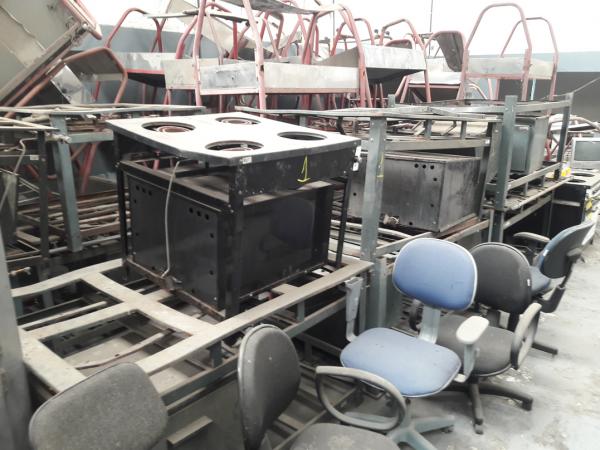 LOTE DE SUCATA DE ELETRODOMÉSTICOS CONTENDO APROXIMADAMENTE 110 ITENS ENTRE GELADEIRAS INDUSTRIAIS, GELADEIRAS DOMÉSTICAS, FREEZERS HORIZONTAIS, BEBEDOUROS, MÁQUINAS DE LAVAR, PANELAS DE INOX, MÁQUINA PARA RECOMPOSIÇÃO DE LEITE, FOGÕES INDUSTRIAIS E BUFFETS TÉRMICOS. SEM TESTE DE FUNCIONAMENTO. SEM GARANTIA. NO ESTADO EM QUE SE ENCONTRA. CUSTOS DE REMOÇÃO E TRANSPORTE POR CONTA DO ARREMATANTE.