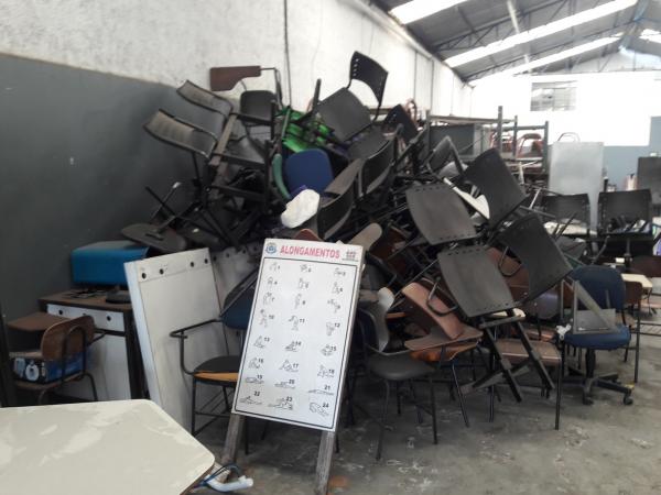 LOTE DE SUCATA DE MOBILIÁRIOS CONTENDO APROXIMADAMENTE 150 ITENS ENTRE ARMÁRIOS DE MADEIRA, PRATELEIRAS, ARQUIVOS DE AÇO, CADEIRAS E CARTEIRAS ESCOLARES, MESA ESCOLAR, CADEIRAS DE DENTISTA, DIVISÓRIAS, COLUNA OFTALMO FUNK, SUPORTES DE FERRO, CESTOS QUEBRADOS, CARRINHOS DE ARMAZÉM E TUBOS DE CADEIRA. SEM TESTE DE FUNCIONAMENTO. SEM GARANTIA. NO ESTADO EM QUE SE ENCONTRA. CUSTOS DE REMOÇÃO E TRANSPORTE POR CONTA DO ARREMATANTE.