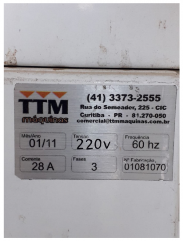 01 (uma) seccionadora horizontal para corte de MDF, aglomerados e chapas de madeira, marca TTM Maxx, fabricada em janeiro/2011, número de fabricação: 01081070, 220 volts trifásico, 28 amperes, 60Hz, avaliada em R$ 60.000,00 (sessenta mil reais). Certificou o oficial de justiça em 01 de julho de 2022: “em bom estado de conservação e em funcionamento”.
