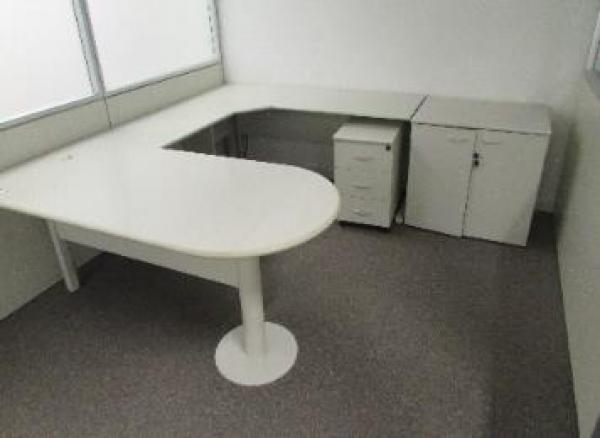 LOTE DE MOBILIÁRIO CONTENDO APROXIMADAMENTE 3 ESTAÇÕES DE TRABALHO EM MADEIRA DE UMA POSIÇÃO JUNTAMENTE COM 1 GAVETEIRO E 1 ARMÁRIO BAIXO 2 PORTAS, CADA. SEM GARANTIA. NO ESTADO EM QUE SE ENCONTRA. CUSTOS DE DESMONTAGEM, REMOÇÃO E TRANSPORTE POR CONTA DO ARREMATANTE.
