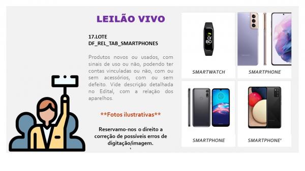 LOTE DF_REL_TAB_SMARTPHONES COM APROXIMADAMENTE 78 ITENS. Produtos novos ou usados, com sinais de uso ou não, podendo ter contas vinculadas ou não, com ou sem acessórios, com ou sem defeito. Vide descrição detalhada no Edital com a relação dos aparelhos. SEM GARANTIA. NO ESTADO EM QUE SE ENCONTRA. CUSTOS DE REMOÇÃO E TRANSPORTE POR CONTA DO ARREMATANTE.