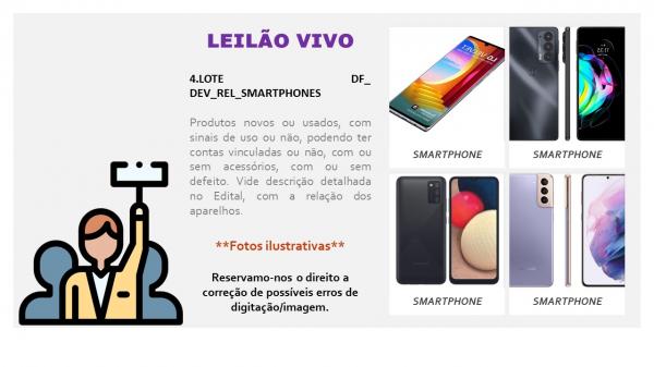 LOTE DF_ DEV_REL_SMARTPHONES COM APROXIMADAMENTE 52 ITENS. Produtos novos ou usados, com sinais de uso ou não, podendo ter contas vinculadas ou não, com ou sem acessórios, com ou sem defeito. Vide descrição detalhada no Edital com a relação dos aparelhos. SEM GARANTIA. NO ESTADO EM QUE SE ENCONTRA. CUSTOS DE REMOÇÃO E TRANSPORTE POR CONTA DO ARREMATANTE.