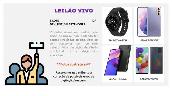 LOTE DF_ DEV_ROT_SMARTPHONES COM APROXIMADAMENTE 76 ITENS. Produtos novos ou usados, com sinais de uso ou não, podendo ter contas vinculadas ou não, com ou sem acessórios, com ou sem defeito. Vide descrição detalhada no Edital com a relação dos aparelhos. SEM GARANTIA. NO ESTADO EM QUE SE ENCONTRA. CUSTOS DE REMOÇÃO E TRANSPORTE POR CONTA DO ARREMATANTE.