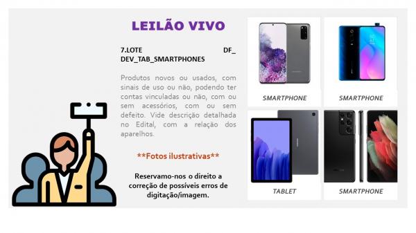 LOTE DF_ DEV_TAB_SMARTPHONES COM APROXIMADAMENTE 73 ITENS. Produtos novos ou usados, com sinais de uso ou não, podendo ter contas vinculadas ou não, com ou sem acessórios, com ou sem defeito. Vide descrição detalhada no Edital com a relação dos aparelhos. SEM GARANTIA. NO ESTADO EM QUE SE ENCONTRA. CUSTOS DE REMOÇÃO E TRANSPORTE POR CONTA DO ARREMATANTE.