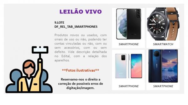 LOTE DF_REL_TAB_SMARTPHONES COM APROXIMADAMENTE 133 ITENS. Produtos novos ou usados, com sinais de uso ou não, podendo ter contas vinculadas ou não, com ou sem acessórios, com ou sem defeito. Vide descrição detalhada no Edital com a relação dos aparelhos. SEM GARANTIA. NO ESTADO EM QUE SE ENCONTRA. CUSTOS DE REMOÇÃO E TRANSPORTE POR CONTA DO ARREMATANTE.