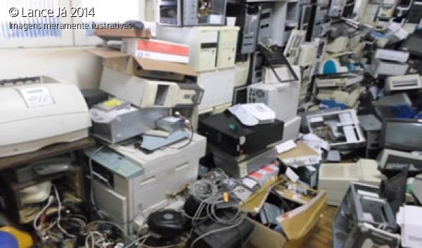 LOTE CONTENDO SUCATA DE INFORMATICA SENDO: CPUS, NOTEBOOKS, IMPRESSORAS, SCANNERS, TECLADOS MOUSES, MONITORES, ESTABILIZADORES, FONTES, TELEFONES SEM FIO, RADIOS, GUILHOTINA E MIMIOGRAFOS. (NO ESTADO).