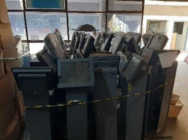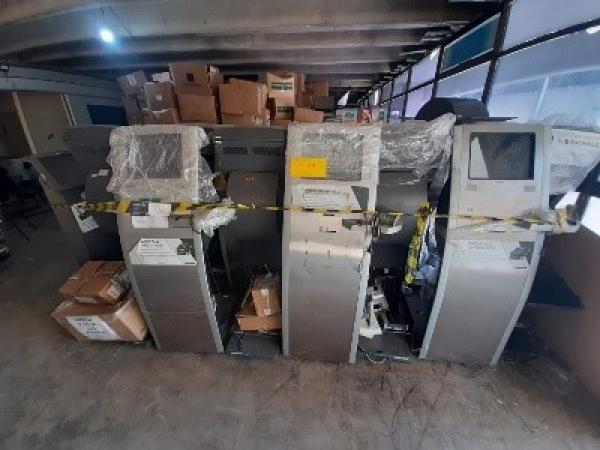 LOTE CONTENDO APROXIMADAMENTE 42 ITENS. ATM, DISPENSADOR DE SENHA, CAIXAS DE DIVERSOS T.I. SEM GARANTIA. SEM TESTE DE FUNCIONAMENTO. NO ESTADO EM QUE SE ENCONTRA. CUSTOS DE REMOÇÃO E TRANSPORTE POR CONTA DO ARREMATANTE.