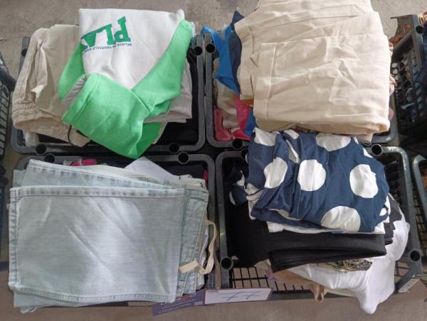 LOTE CONTENDO APROXIMADAMENTE 100 PEÇAS DE ROUPAS DIVERSAS (ROUPAS MASCULINAS, FEMININAS E INFANTIL). SEM GARANTIA. NO ESTADO EM QUE SE ENCONTRA. CUSTOS DE REMOÇÃO E TRANSPORTE POR CONTA DO ARREMATANTE. Observação: Cestos não inclusos no lote - Local: Av. Amélia Latorre, 11 - Jardim Guanabara, Jundiaí/SP.