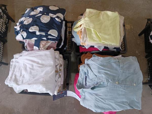 LOTE CONTENDO APROXIMADAMENTE 100 PEÇAS DE ROUPAS DIVERSAS (ROUPAS MASCULINAS, FEMININAS E INFANTIL). SEM GARANTIA. NO ESTADO EM QUE SE ENCONTRA. CUSTOS DE REMOÇÃO E TRANSPORTE POR CONTA DO ARREMATANTE. Observação: Cestos não inclusos no lote - Local: Av. Amélia Latorre, 11 - Jardim Guanabara, Jundiaí/SP.