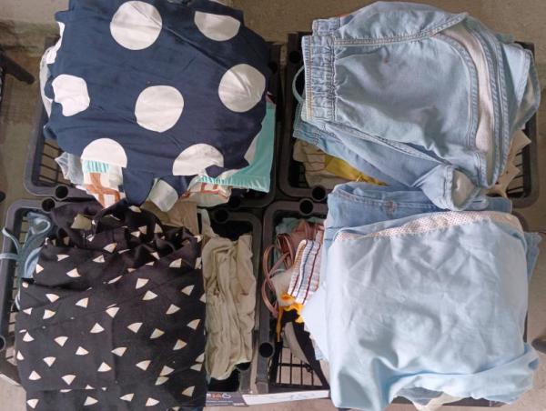 LOTE CONTENDO APROXIMADAMENTE 100 PEÇAS DE ROUPAS DIVERSAS (ROUPAS MASCULINAS, FEMININAS E INFANTIL). SEM GARANTIA. NO ESTADO EM QUE SE ENCONTRA. CUSTOS DE REMOÇÃO E TRANSPORTE POR CONTA DO ARREMATANTE. Observação: Cestos não inclusos no lote - Local: Av. Amélia Latorre, 11 - Jardim Guanabara, Jundiaí/SP.