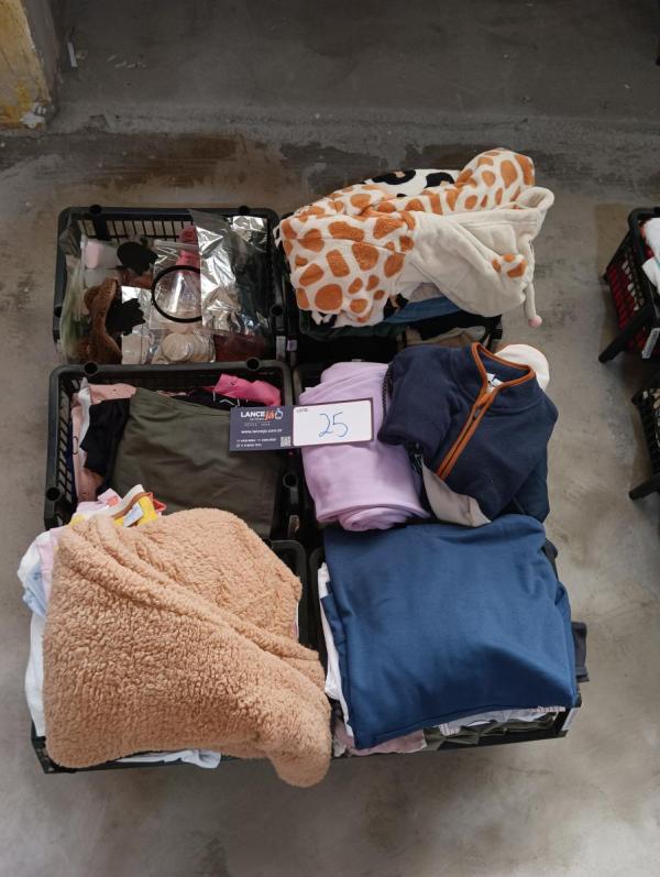 LOTE CONTENDO APROXIMADAMENTE 150 PEÇAS DE ROUPAS DIVERSAS (ROUPAS MASCULINAS, FEMININAS E INFANTIL) E ACESSÓRIOS. SEM GARANTIA. NO ESTADO EM QUE SE ENCONTRA. CUSTOS DE REMOÇÃO E TRANSPORTE POR CONTA DO ARREMATANTE. Observação: Cestos não inclusos no lote. Local: Av. Amélia Latorre, 11 - Jardim Guanabara, Jundiaí/SP.