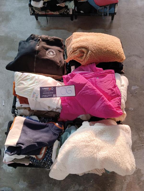 LOTE CONTENDO APROXIMADAMENTE 150 PEÇAS DE ROUPAS DIVERSAS (ROUPAS MASCULINAS, FEMININAS E INFANTIL) E ACESSÓRIOS. SEM GARANTIA. NO ESTADO EM QUE SE ENCONTRA. CUSTOS DE REMOÇÃO E TRANSPORTE POR CONTA DO ARREMATANTE. Observação: Cestos não inclusos no lote. Local: Av. Amélia Latorre, 11 - Jardim Guanabara, Jundiaí/SP.
