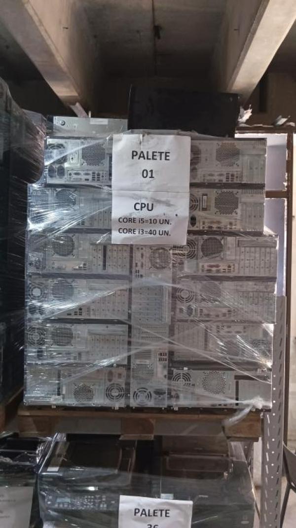 PALETE 01 – APROX. QTDE 50, sendo: 40 CPU CORE I3 e 10 CPU CORE I5, 4GB MEMORIA, SEM HD, COM PROCESSADOR, EQUIPAMENTOS SERÃO VENDIDOS SEM GARANTIA, O ESTADO QUE SE ENCONTRAM, PODEM APRESENTAR DEFEITOS. NÃO ACOMPANHA FONTES OU CABOS, NÃO HÁ GARANTIA PARA ESTES ITENS/EQUIPAMENTOS. CUSTOS DE REMOÇÃO E TRANSPORTE POR CONTA DO ARREMATANTE. Local: Av. Amélia Latorre, 11 - Jardim Guanabara, Jundiaí/SP.