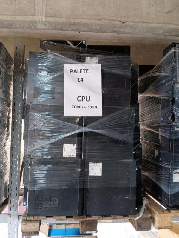 PALETE 14 – APROX. QTDE 50, sendo: 50 CPU CORE I3, 4GB MEMORIA, SEM HD, COM PROCESSADOR, EQUIPAMENTOS SERÃO VENDIDOS SEM GARANTIA, O ESTADO QUE SE ENCONTRAM, PODEM APRESENTAR DEFEITOS. NÃO ACOMPANHA FONTES OU CABOS, NÃO HÁ GARANTIA PARA ESTES ITENS/EQUIPAMENTOS. CUSTOS DE REMOÇÃO E TRANSPORTE POR CONTA DO ARREMATANTE. Local: Av. Amélia Latorre, 11 - Jardim Guanabara, Jundiaí/SP.