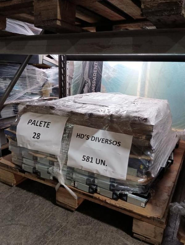 APROX. QTDE 581, sendo: 4 HD SATA 8 TB,1 HD SATA 6TB, 55 HD SATA 4TB, 20 HD SATA 3 TB, 19 HD SATA 2 TB, 93 HD SATA 1TB, 389 HD SATA 900GB. EQUIPAMENTOS SERÃO VENDIDOS SEM GARANTIA, O ESTADO QUE SE ENCONTRAM, PODEM APRESENTAR DEFEITOS. NÃO ACOMPANHA FONTES OU CABOS, NÃO HÁ GARANTIA PARA ESTES ITENS/EQUIPAMENTOS. CUSTOS DE REMOÇÃO E TRANSPORTE POR CONTA DO ARREMATANTE. Local: Av. Amélia Latorre, 11 - Jardim Guanabara, Jundiaí/SP.