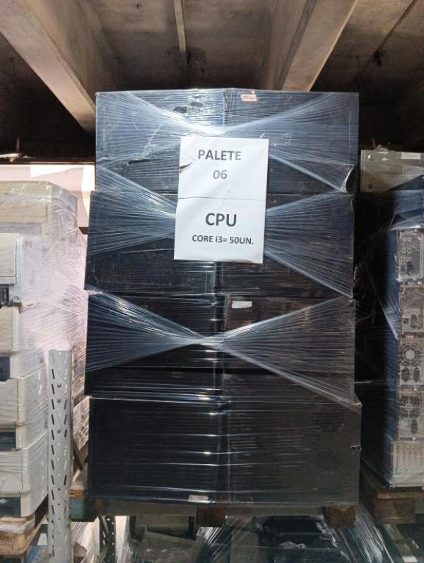 PALETE 06 – APROX. QTDE 50, sendo: 50 CPU CORE I3, 4GB MEMORIA, SEM HD, COM PROCESSADOR, EQUIPAMENTOS SERÃO VENDIDOS SEM GARANTIA, O ESTADO QUE SE ENCONTRAM, PODEM APRESENTAR DEFEITOS. NÃO ACOMPANHA FONTES OU CABOS, NÃO HÁ GARANTIA PARA ESTES ITENS/EQUIPAMENTOS. CUSTOS DE REMOÇÃO E TRANSPORTE POR CONTA DO ARREMATANTE. Local: Av. Amélia Latorre, 11 - Jardim Guanabara, Jundiaí/SP.