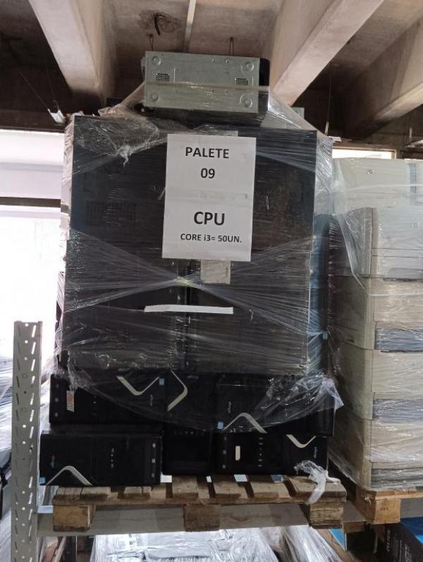 PALETE 09 – APROX. QTDE 50, sendo: 50 CPU CORE I3, 4GB MEMORIA, SEM HD, COM PROCESSADOR, EQUIPAMENTOS SERÃO VENDIDOS SEM GARANTIA, O ESTADO QUE SE ENCONTRAM, PODEM APRESENTAR DEFEITOS. NÃO ACOMPANHA FONTES OU CABOS, NÃO HÁ GARANTIA PARA ESTES ITENS/EQUIPAMENTOS. CUSTOS DE REMOÇÃO E TRANSPORTE POR CONTA DO ARREMATANTE. Local: Av. Amélia Latorre, 11 - Jardim Guanabara, Jundiaí/SP.