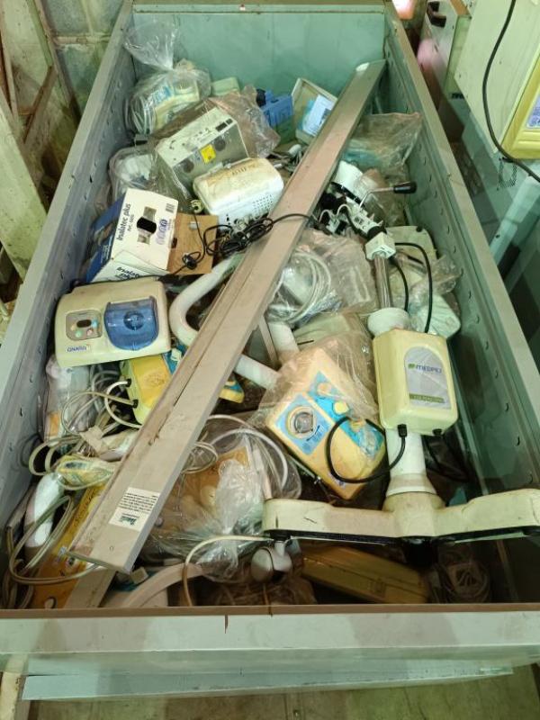 LOTE DE CONTENDO APROXIMADAMENTE 500 ITENS ENTRE FERRAMENTAS DIVERSAS, UTENSÍLIOS DOMÉSTICOS DIVERSOS, LIQUIDIFICADOR, BALANÇA, UMIDIFICADOR, ESCADA, EQUIPAMENTOS HOSPITALARES DIVERSOS, COMPRESSORES E EQUIPAMENTOS DIVERSOS. SEM TESTE DE FUNCIONAMENTO. SEM GARANTIA. NO ESTADO EM QUE SE ENCONTRA. CUSTOS DE REMOÇÃO E TRANSPORTE POR CONTA DO ARREMATANTE.