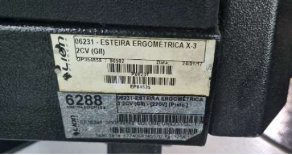 01 esteira ergométrica, marca LION FITNESS, modelo X3, número de série 5774066140370. Certificou o Oficial de Justiça (Id. d54f20d): "em bom estado de conservação e funcionamento".