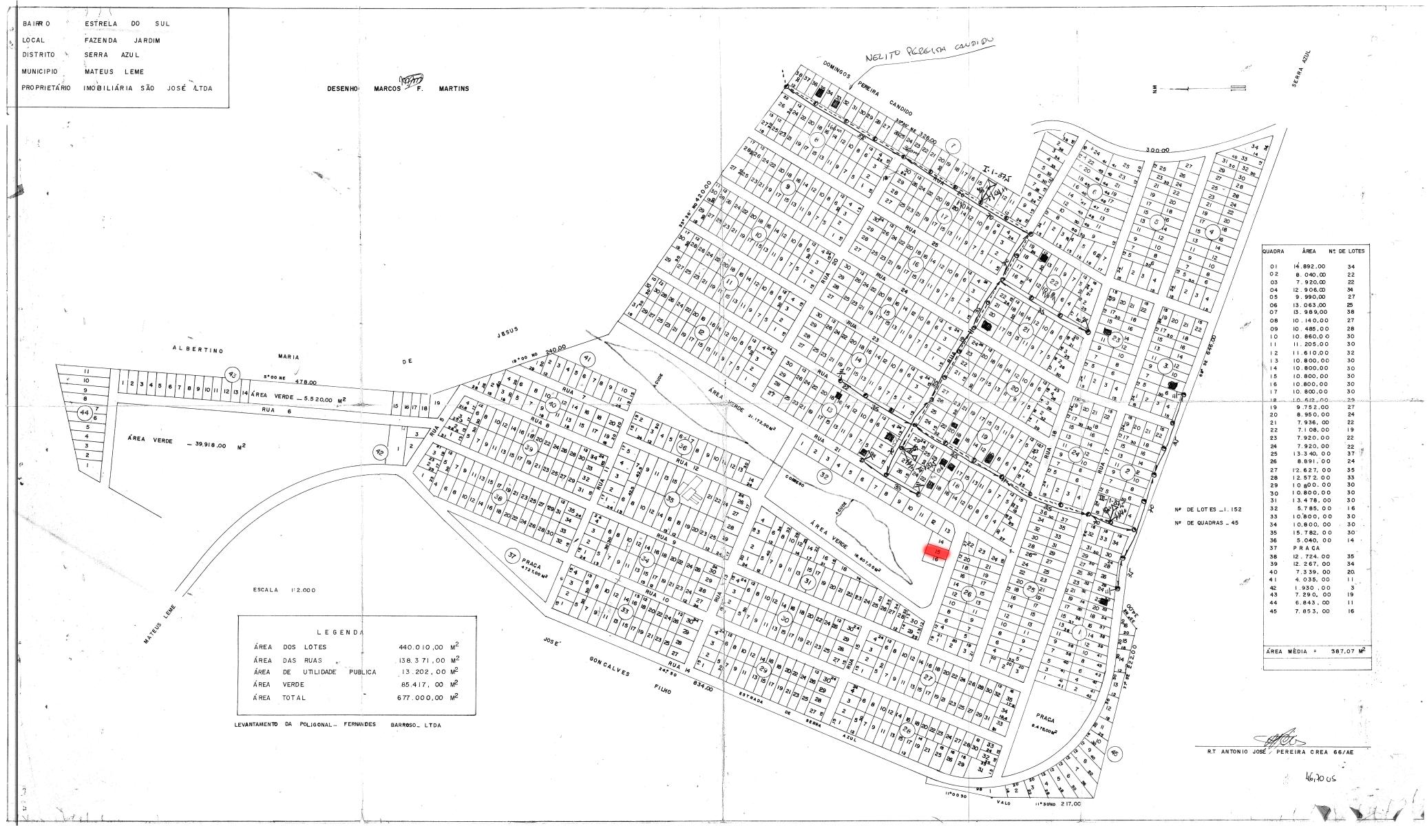Lote 15 - Terreno com a área de 360 m², n° 15 (quinze), quadra n° 32 (trinta e dois), Bairro Estrela do Sul, Mateus Leme/MG.