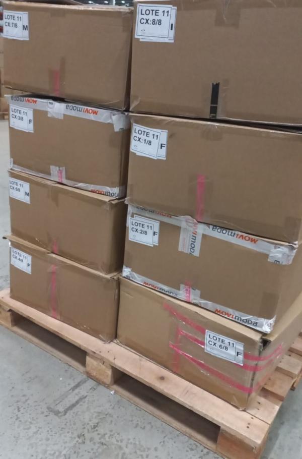 Lote composto por aproximadamente 450 peças de roupas diversas. Sem garantia, no estado em que se encontram. As peças poderão apresentar avarias variadas, incluindo, mas não se limitando a: pequenos rasgos, manchas, desbotamento, fios puxados, ausência de botões, zíperes danificados, sinais de uso ou desgaste natural. Custos de remoção, carregamento e transporte serão de inteira responsabilidade do arrematante. Localização do bem: Avenida Amélia Latorre, nº 11 - Jardim Guanabara, Jundiaí/SP.