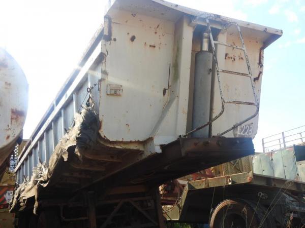 Frota: 40016 - Descrição: SEMI-REBOQUE BASC. FACCHINI SRF CB, 3 EIXOS, ANO/MOD. 1998, BRANCA, PLACA BXF5585. INCOMPLETA. NO ESTADO EM QUE SE ENCONTRA