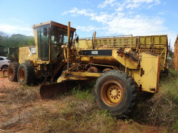 Frota: 3527 - Descrição: MOTO NIVELADORA CATERPILLAR 140K ARTICULADA, 02 EIXOS, DIESEL, ANO/MOD. 2012, AMARELA. NO ESTADO EM QUE SE ENCONTRA