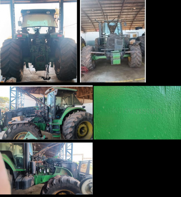 Frota: 32038 - Descrição: TRATOR AGRICOLA JOHN DEERE JD7715, 02 EIXOS, DIESEL, COR VERDE, ANO/MOD 2010. NO ESTADO EM QUE SE ENCONTRA. A HOMOLOGAÇÃO DO LANCE VENDEDOR DESTE LOTE FICARÁ CONDICIONADA À PRÉVIA MANIFESTAÇÃO DAS RECUPERANDAS, CONFORME ITEM ''5'' DO PRESENTE EDITAL DE LEILÃO.
