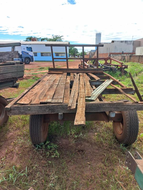Lote contendo 2 carretas agrícolas em madeira. Bem vendido sem garantia, no estado em que se encontra, podendo apresentar avarias e/ou necessidade de manutenção, sendo os custos de remoção e transporte de responsabilidade do arrematante. Recomenda-se vistoria prévia. Eventuais custos de regularização, manutenção ou transferência serão de responsabilidade exclusiva do arrematante.