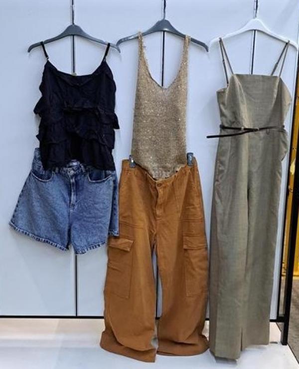Lote composto por aproximadamente 62 peças de roupas diversas. Sem garantia, no estado em que se encontram. As peças poderão apresentar avarias variadas, incluindo, mas não se limitando a: pequenos rasgos, manchas, desbotamento, fios puxados, ausência de botões, zíperes danificados, sinais de uso ou desgaste natural. Custos de remoção, carregamento e transporte serão de inteira responsabilidade do arrematante. Retirada dos Bens: Jundiai/SP.