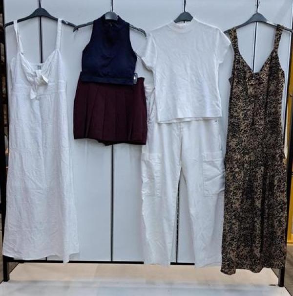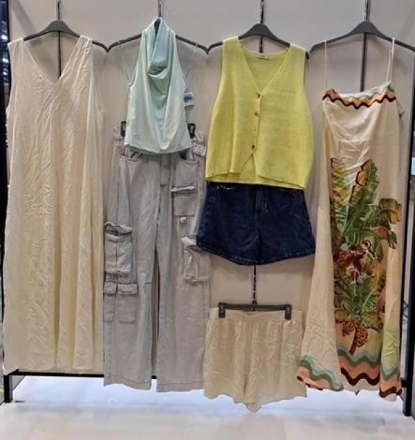 Lote composto por aproximadamente 62 peças de roupas diversas. Sem garantia, no estado em que se encontram. As peças poderão apresentar avarias variadas, incluindo, mas não se limitando a: pequenos rasgos, manchas, desbotamento, fios puxados, ausência de botões, zíperes danificados, sinais de uso ou desgaste natural. Custos de remoção, carregamento e transporte serão de inteira responsabilidade do arrematante. Retirada dos Bens: Jundiai/SP.