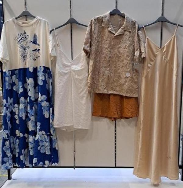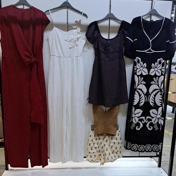 Lote composto por aproximadamente 192 peças de roupas diversas. Sem garantia, no estado em que se encontram. As peças poderão apresentar avarias variadas, incluindo, mas não se limitando a: pequenos rasgos, manchas, desbotamento, fios puxados, ausência de botões, zíperes danificados, sinais de uso ou desgaste natural. Custos de remoção, carregamento e transporte serão de inteira responsabilidade do arrematante. Retirada dos Bens: Jundiai/SP.