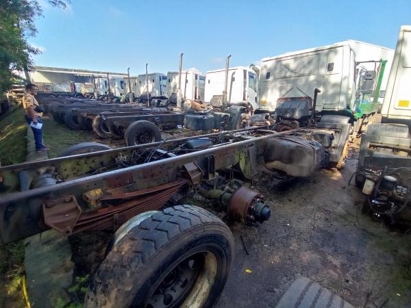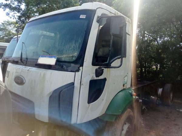 LOTE CONTENDO: CAMINHÃO FORD CARGO 1723 E TURBO, 2 PORTAS, DIESEL, ANO/MOD. 2017, COR BRANCA, FINAL PLACA 5. NO ESTADO EM QUE SE ENCONTRA, (COM MOTOR, SEM CAMBIO, SEM DIFERENCIAL, COM 4 PNEUS, SEM BATERIA, PAINEL INT. DESMONTADO). Com direito a documentação. Sem garantia, no estado em que se encontra. Custos de remoção e transporte por conta do arrematante.