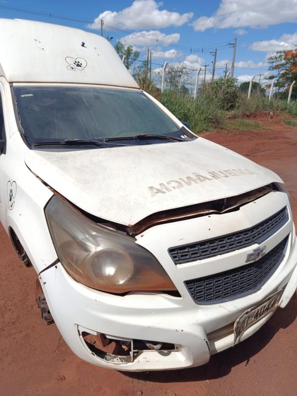 Sucata, Chevrolet Montana LS 1.4, ano/modelo 2013/2014, placas EGI 4044, cor branca. Sem garantia, no estado em que se encontra, custos de remoção e transporte por conta do arrematante. (Sem direito a documentação).