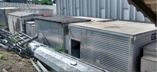 Sucata de mini container, bastidor, ar condicionado, banco bateria, inversores, rádios, unid. Distribuição e conversores (aprox. 14 pç)